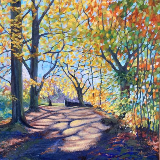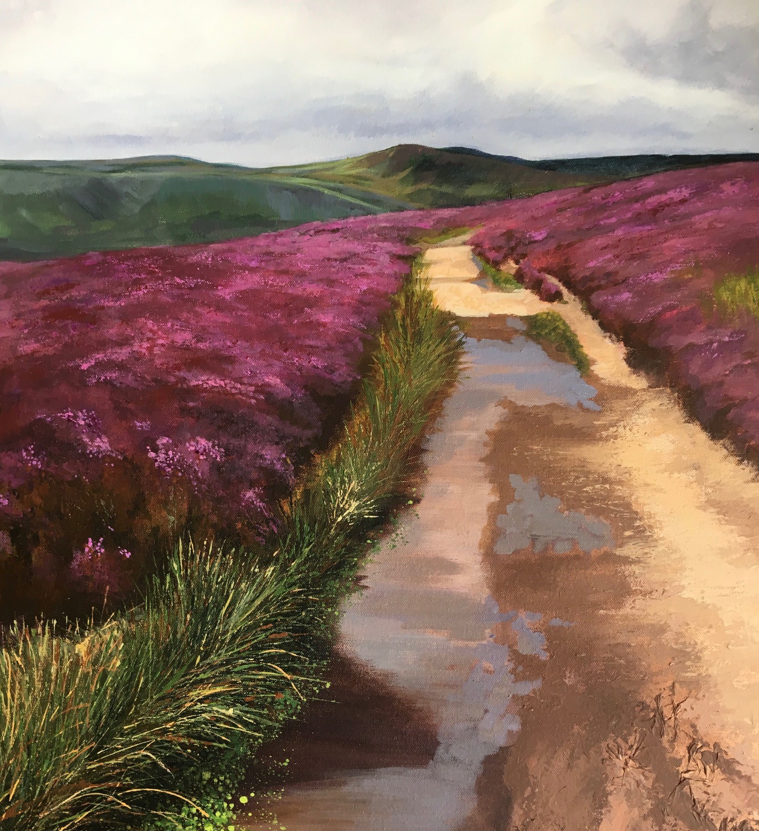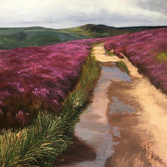 Like many people in Sheffield Margot enjoys walking in the Peak District with her family dog and many of the paintings are inspired by those walks.